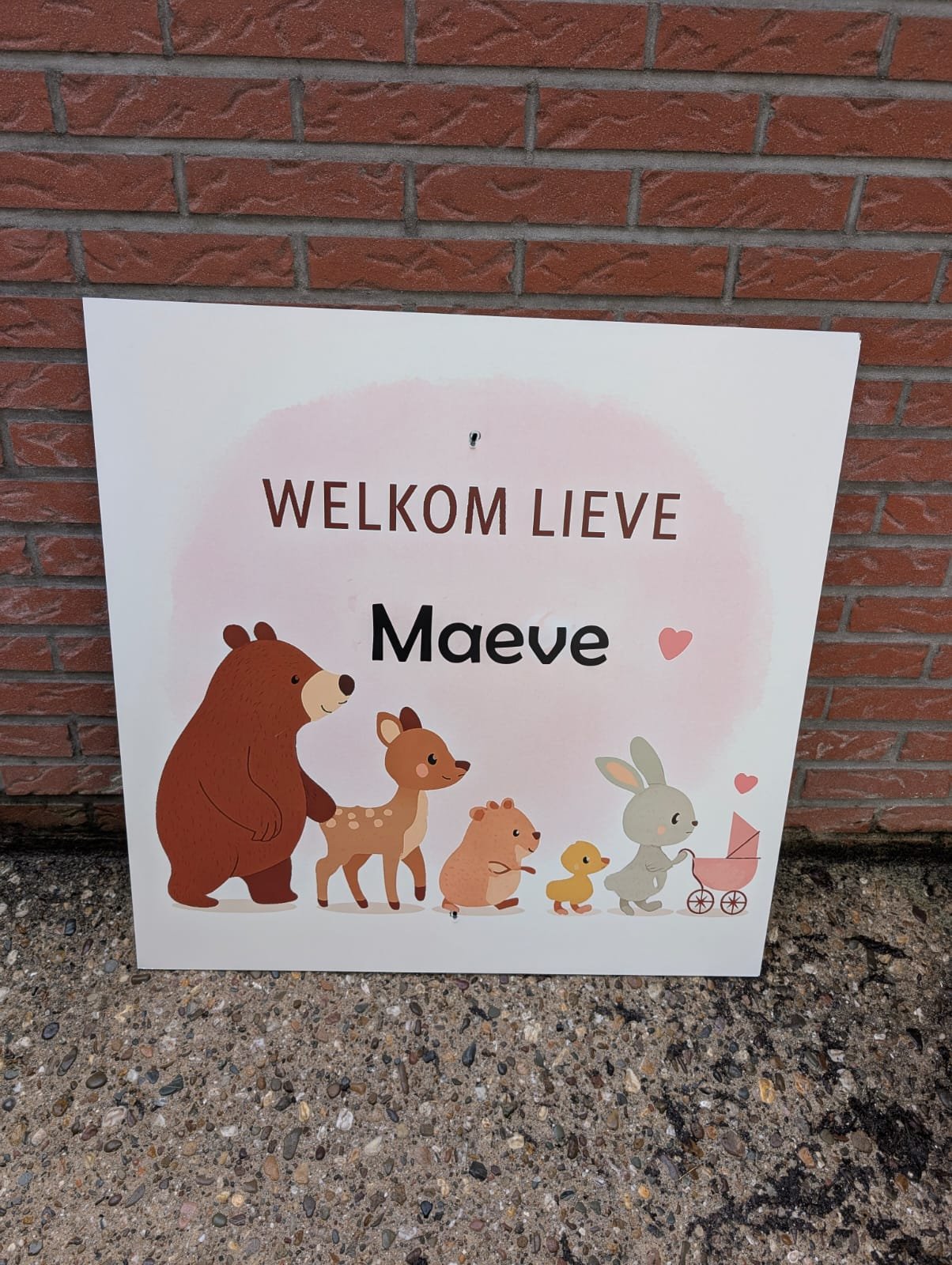 Of je nu een trotse tante, buurvrouw of collega bent—dit geboortebord is een liefdevolle verrassing voor de ouders. De zachte kleuren, het speelse ontwerp en de hartjes maken het een echte blikvanger in de tuin. Een feestelijke aankondiging én een blijvende herinnering aan een bijzonder moment.